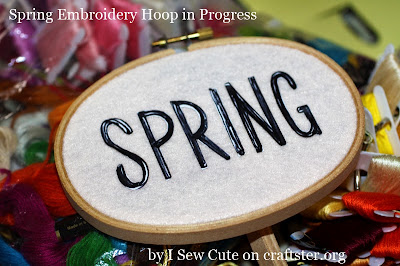 First, I wrote the word 'spring' on sticky-backed paper & cut out the letters. I stuck them to my fabric in the hoop (loving this oval shape so much for this project).