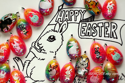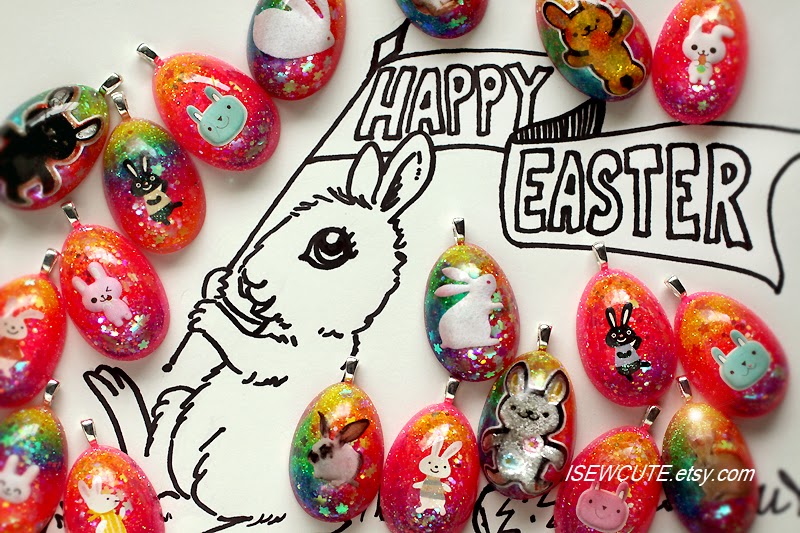I have been busy, busy, busy handcrafting many brand new one of a kind Easter egg glitter bunny necklaces for spring 2014! I have already listed many of them in the shop!